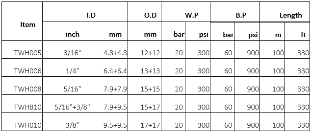 Twin Welding Hose Temperature: -32℃ (-90 ℉ ) to 80℃(+176 ℉)
