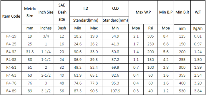 Hydraulic Hose SAE100 R4 Temperature Range: -40℃ (-104 ℉ ) to +100℃(+212 ℉)